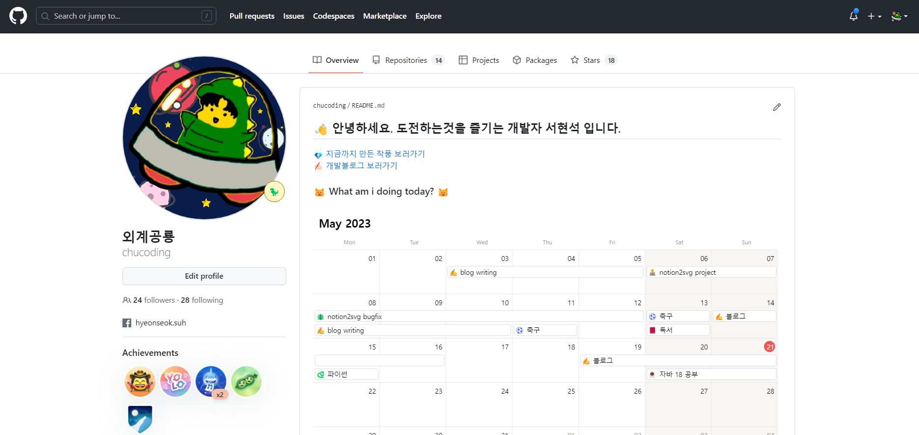 설명 : 노션에서 기록한 달력을 Github README.md에서 볼 수 있도록 개발