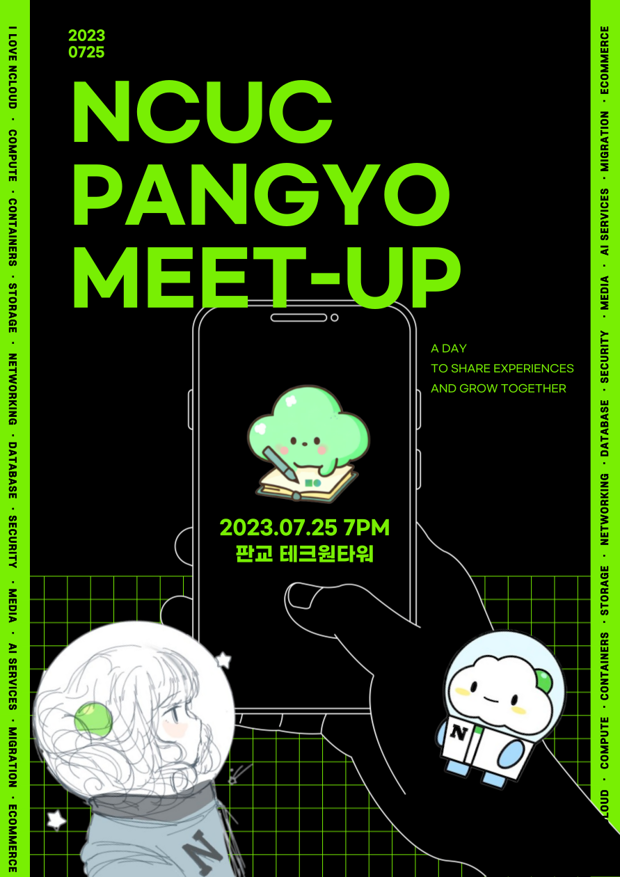 들어가며 지난 7월 판교에서 네이버 클라우드의 첫 지역 소모임인 NCUC 판교 소모임 1회를 열게 되었습니다. NCUC 판교 소모임이란? 판교에서 활동하는 네이버 클라우드 유저 분들이 오프라인에서