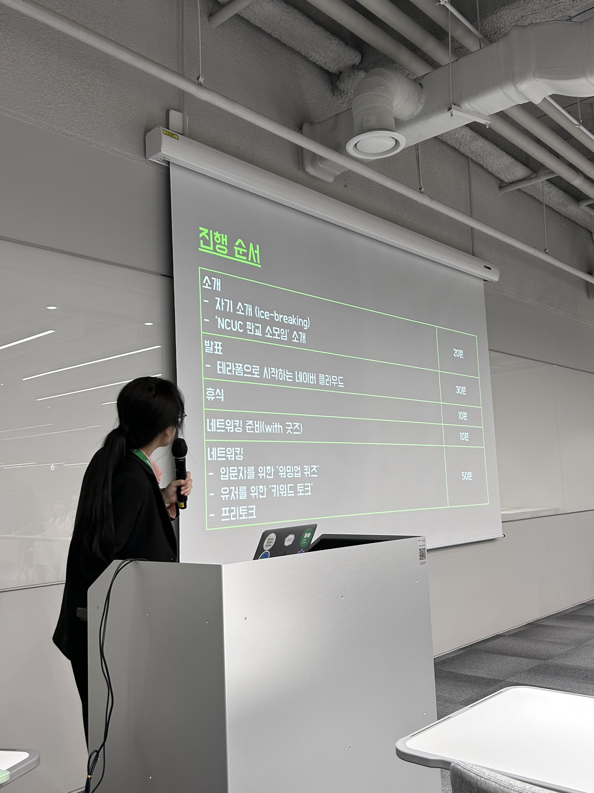 판교 소모임 1회 밋업은 테크원 타워 홀에서 진행되었는데요. 아래와 같은 순서로 진행이 되었습니다. 미리 소모임 참여자 분들을 모집할 때 사전조사를 통해 어떠한 소모임이 되었으면 좋겠다하는 바람들을 모아서 진행하였기 때문에 NCUC 분들과 함께 만들어가는 소모임이라는 점에서 더욱 의미가 있는 행사가 아닐까 싶습니다.