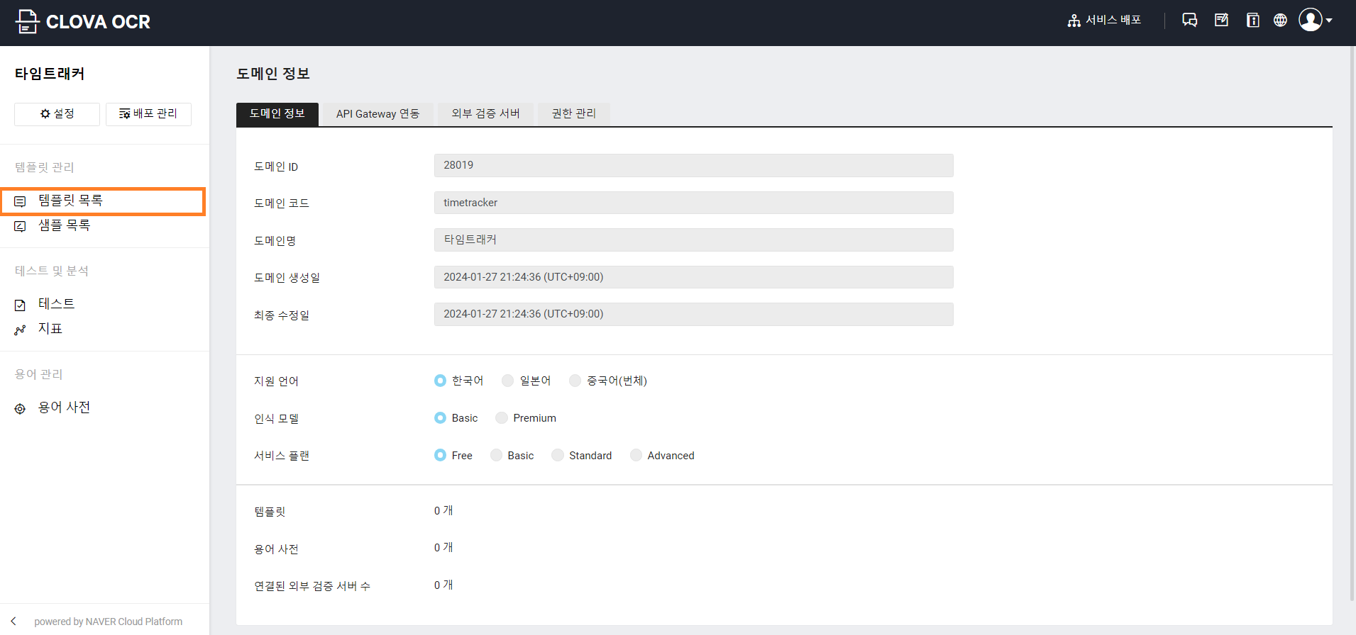 🍀 CLOVA OCR에 타임트래커 템플릿 등록