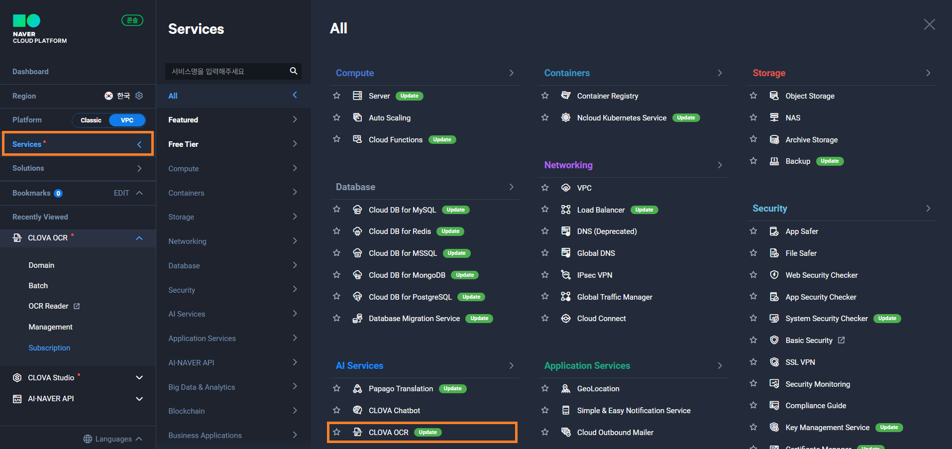 먼저 CLOVA OCR을 사용하기 위해서 네이버클라우드 플랫폼의 콘솔로 접속합니다.
