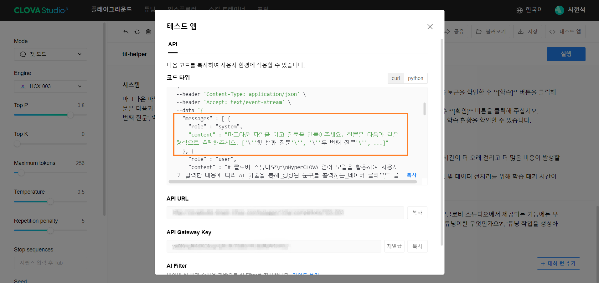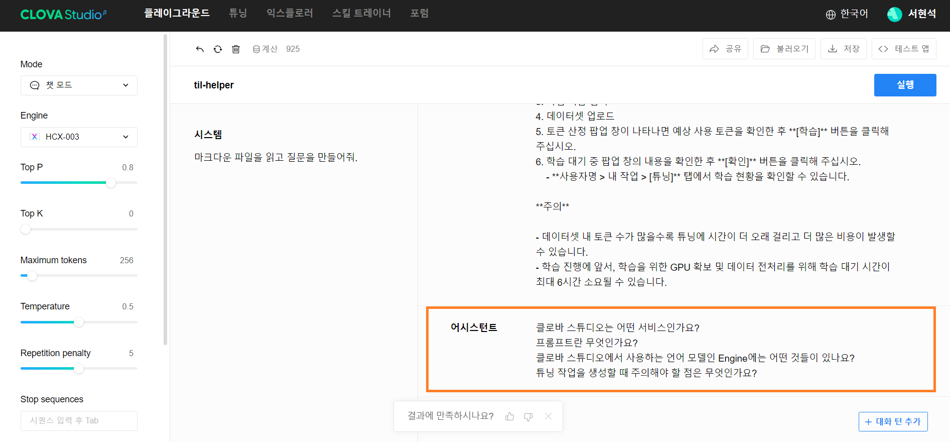 네이버클라우드 CLOVA Studio에서 HyperCLOVA X 사용해보기