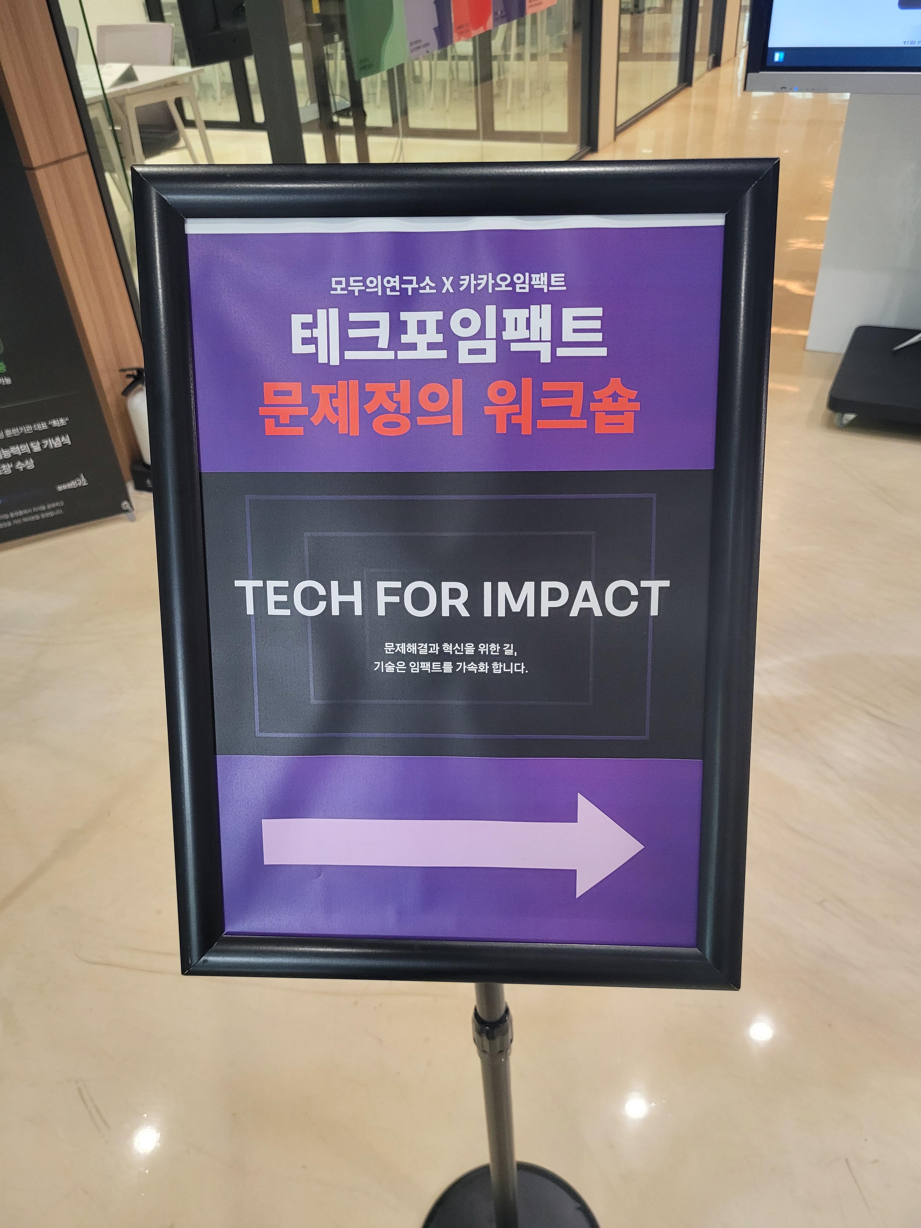 모두의연구소에서 진행된 테크포임팩트 문제정의 워크샵 문제정의 워크샵은 제가 속한 LAB 뿐만 아니라 다른 LAB을 담당하시는 분들도 함께하는 자리입니다. 따라서 워크샵을 통해 다른 LAB장 분들은 앞으로 어떻게 프로젝트를 이끌어나갈 계획이신지, 어떤 사회적인 문제들을 풀고자 프로젝트를 개설하게 되었는지 상세한 이야기들을 들을 수 있어서 재미있고 좋은 경험을 얻을 수 있습니다.