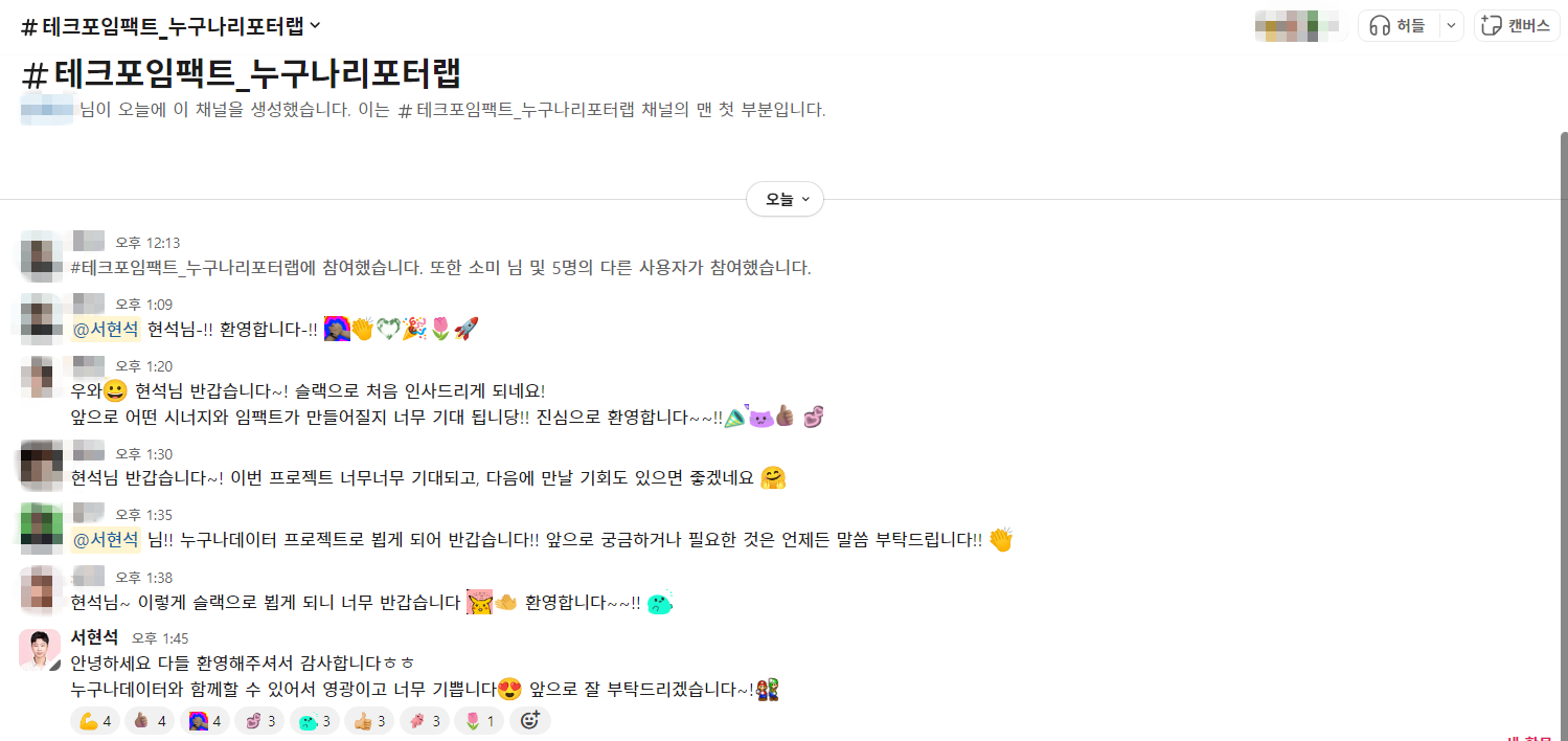 그 결과 저의 열정을 좋게 봐주신 모두연 랩 가드너님과 브라이언 펠로우(프로젝트 개설자)님 덕분에 운 좋게 2024년 하반기 테크포임팩트 랩을 이끌어갈 랩짱들 중 한 명으로 선발될 수 있게 되었습니다.