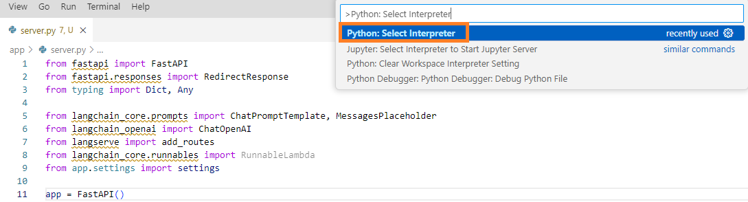 poetry install그 이후에는 간단하게 프로젝트에 생성되어 있는 app/server.py를 다음과 같이 수정합니다.