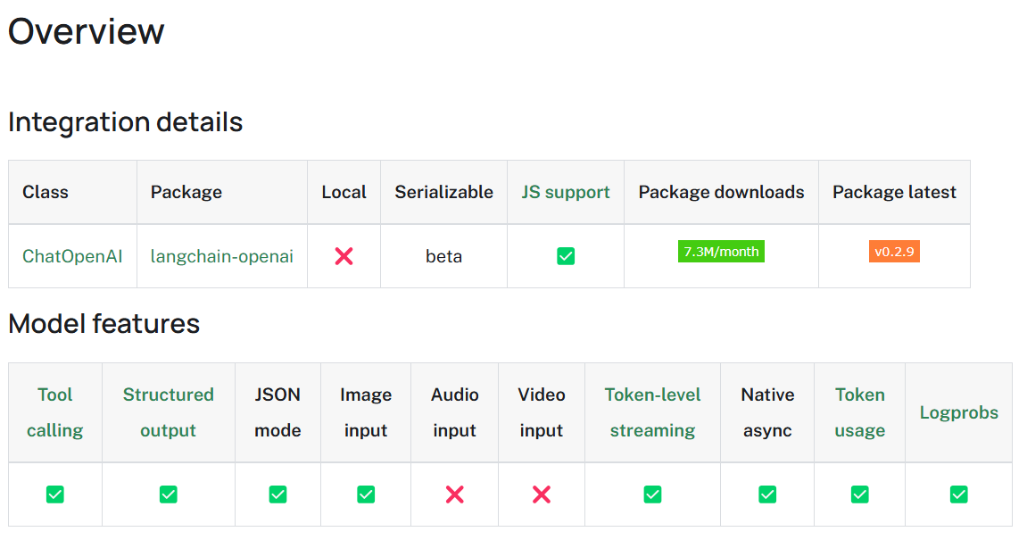 https://github.com/langchain-ai/langchain/releases?q=tag%3A"langchain-community%3D%3D0"&expanded=true ChatCLOVA X는 랭체인에서 어떤 기능들을 제공하고 있을까요? 우선, 가장 많은 기능을 지원하고 있는 openai의 ChatOpenAI 클래스와 비교해서 확인해 보도록 하겠습니다.