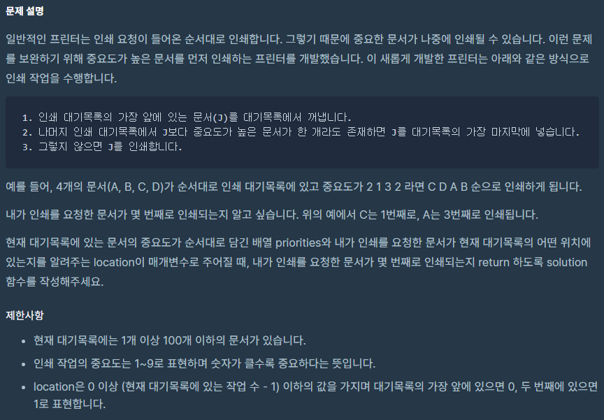 문제 https://programmers.co.kr/learn/courses/30/lessons/42587