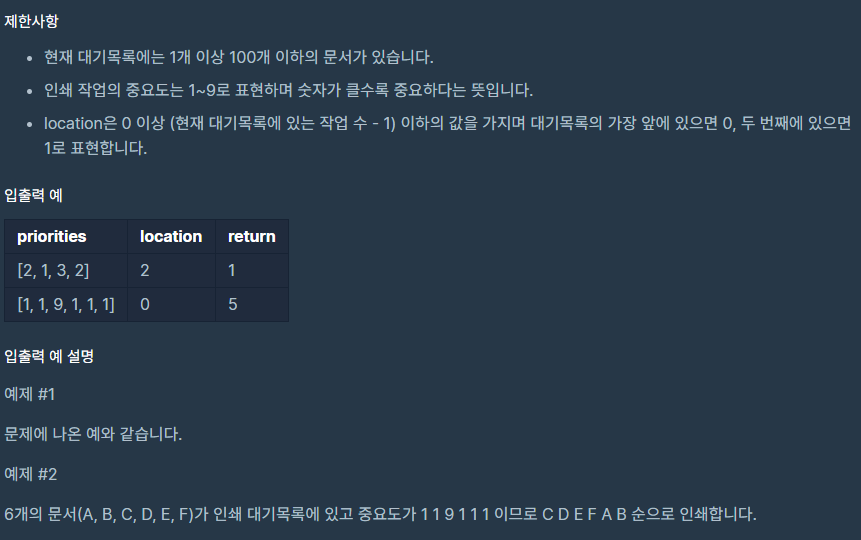 문제 https://programmers.co.kr/learn/courses/30/lessons/42587