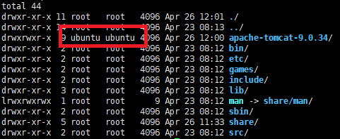 다음과 같이 /usr/local 아래에 root없이 사용가능한 톰캣 폴더가 생겼습니다.