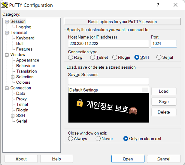 저는 putty를 이용하여 원격 호스트에 접속해 보겠습니다.