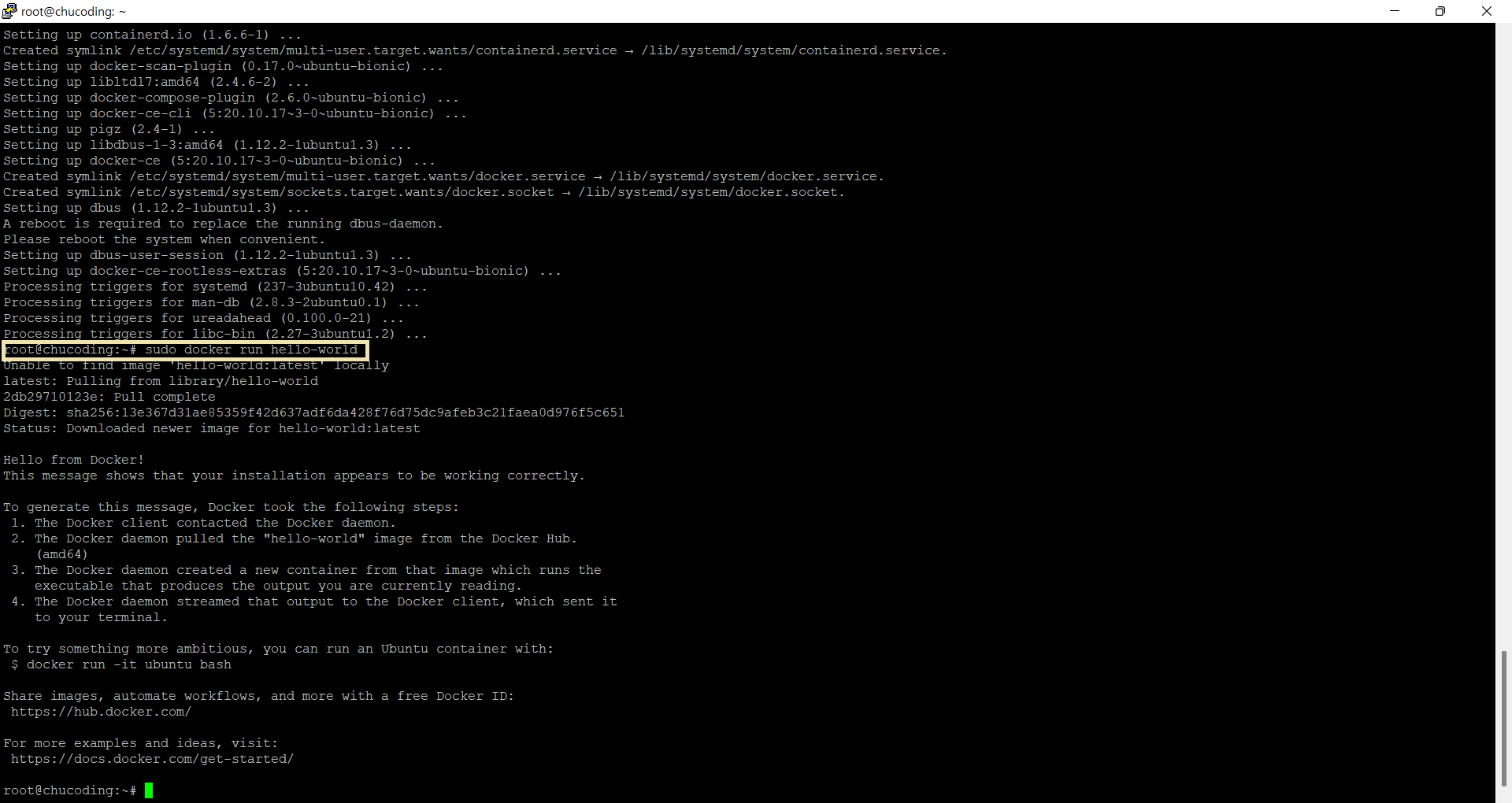 도커가 잘 설치된것을 확인해볼 수 있습니다.