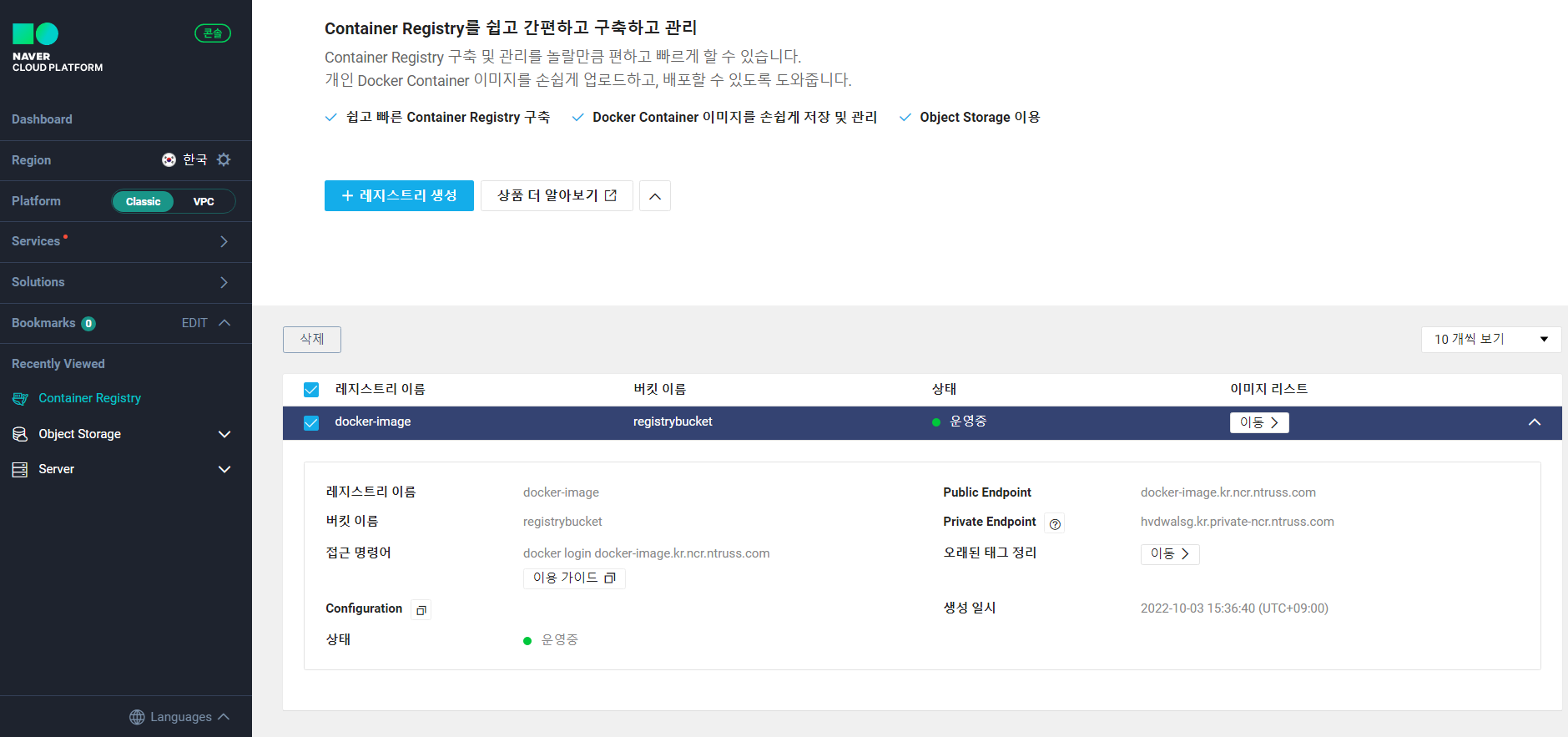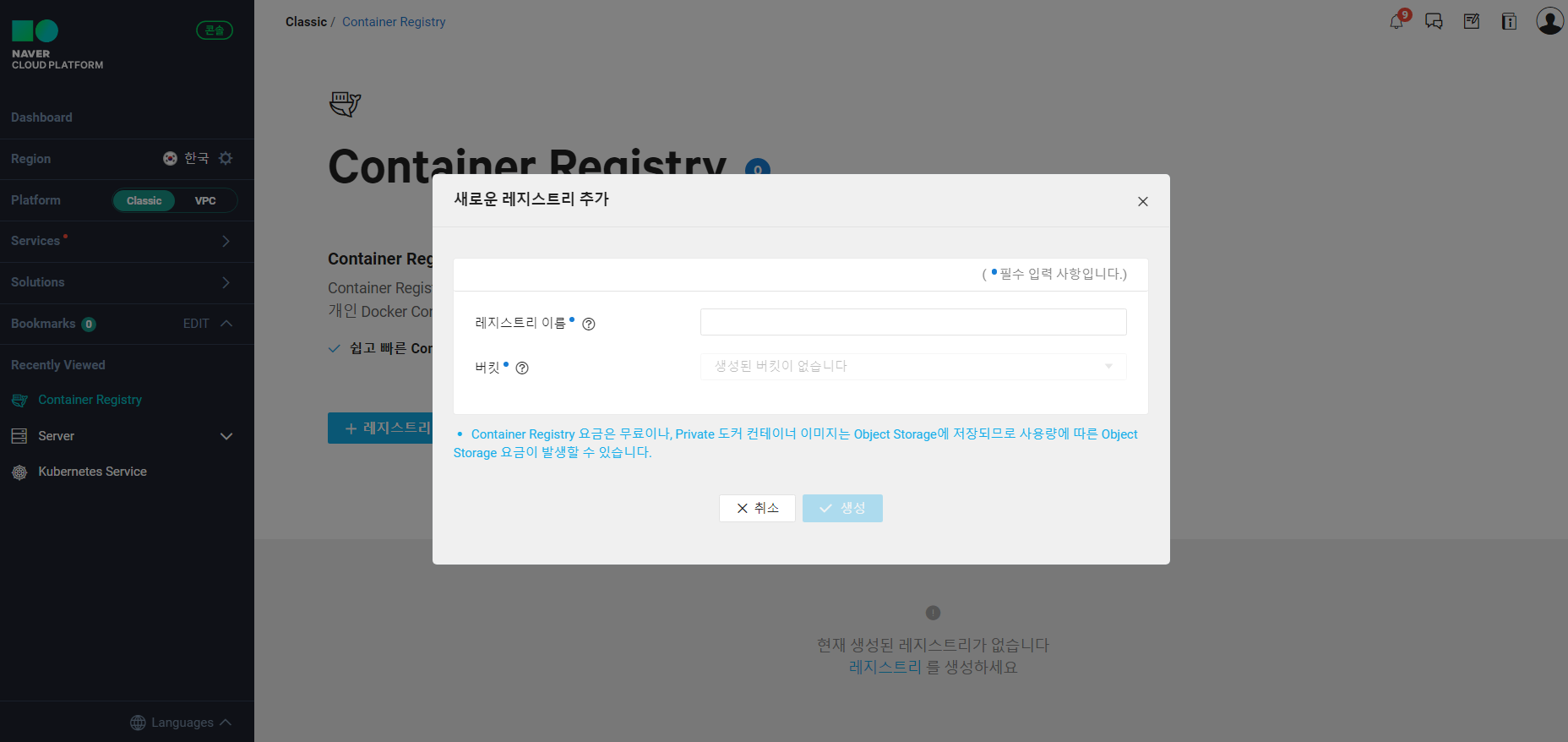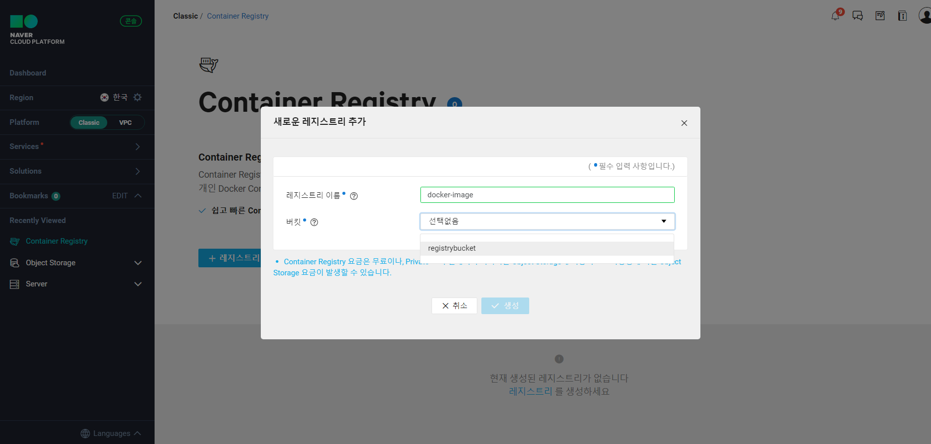 하지만! 레지스트리와 연동된 Object Storage의 사용량에 대한 비용이 과금됩니다. (결국은 사용하려면 돈 내라는 소리..)