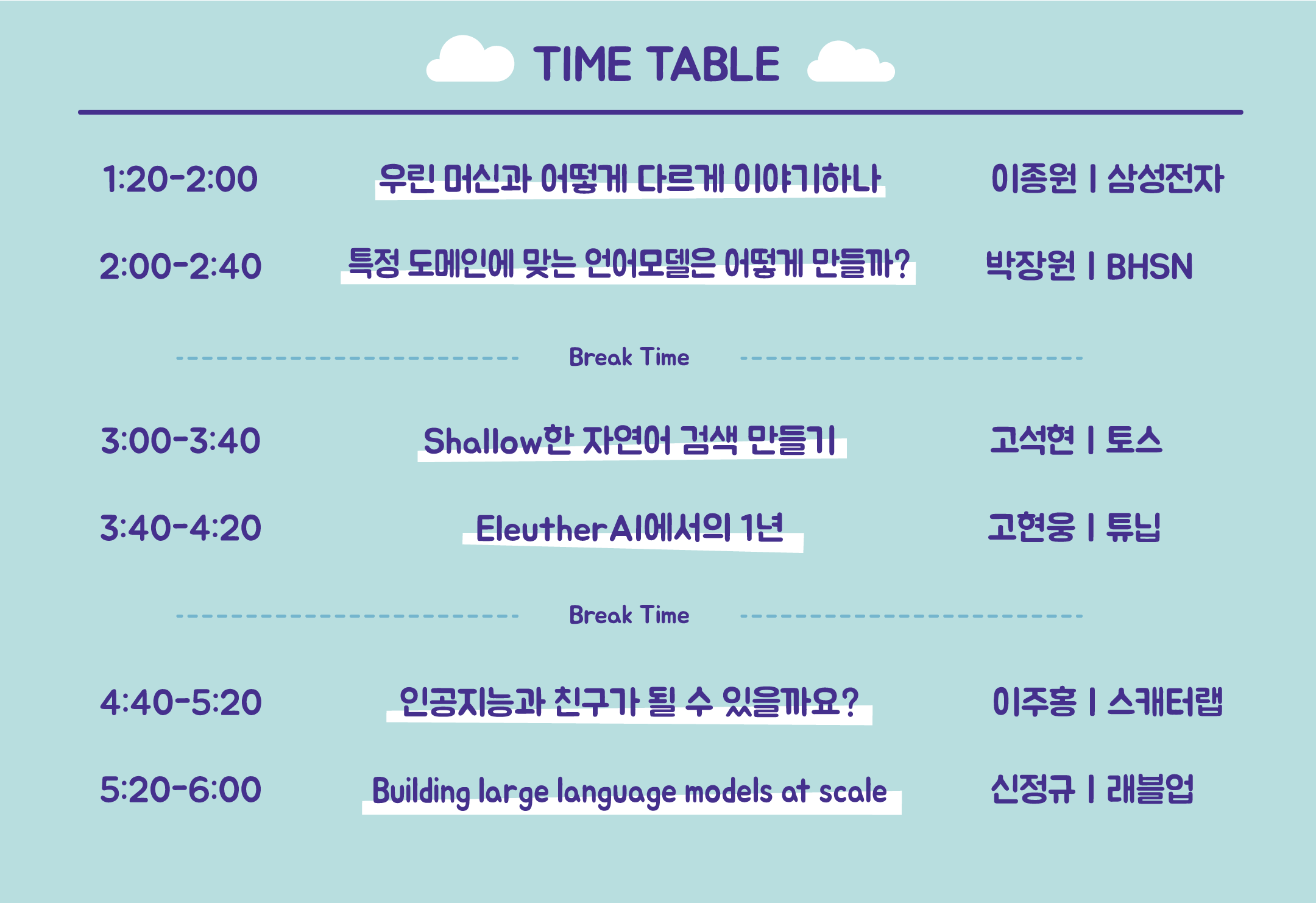 다섯 번째 발표로는 스캐터랩의 이주홍 님께서 발표를 맡아주셨습니다. 스캐터랩은 많은 사람에게 친숙한 이루다를 개발한 연구소이기 때문에 흥미롭게 들을 수 있었던 주제였습니다.