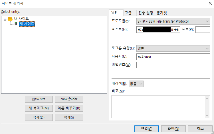 - AWS의 경우에는 SFTP로 접속 가능하기 때문에 .pem 파일을 등록해주어야 한다.