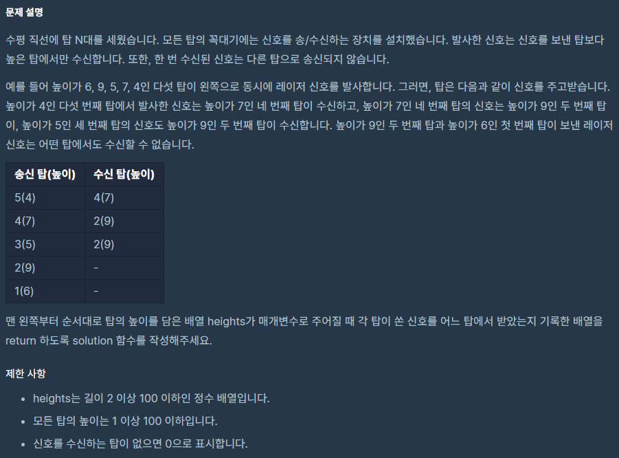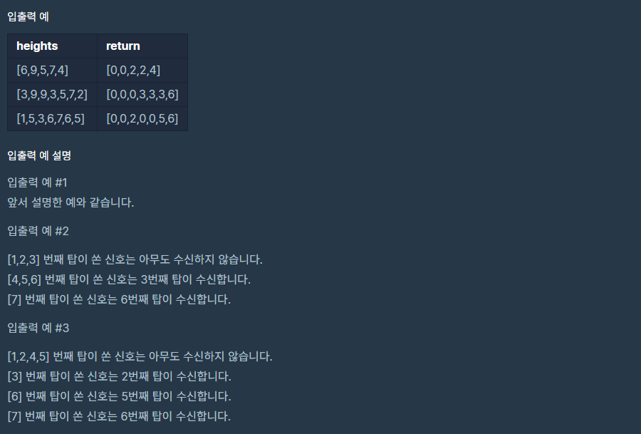 코딩테스트 고득점 kit / 스택/큐 / 탑 / JAVA