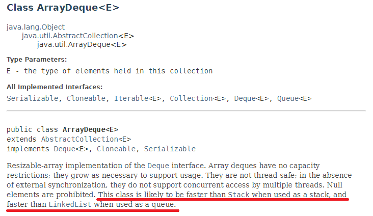 그러나 Queue를 구현할때 ArrayDeque로 구현하는 것이 LinkedList로 구현하는 것보다 빠르다고
