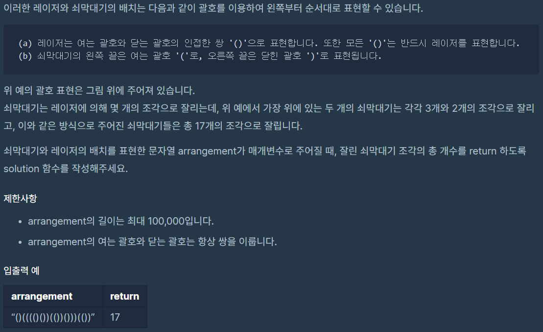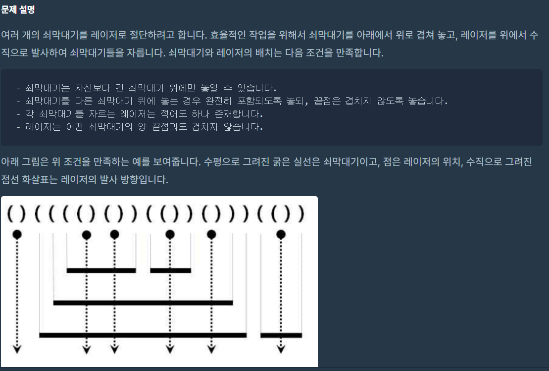 코딩테스트 고득점 kit / 스택&큐 / 쇠막대기 / JAVA