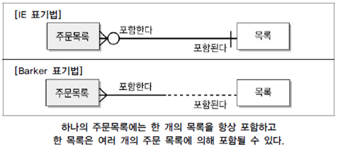 - ERD에서 관계를 나타내는 선에서 선택참여하는 엔터티 쪽을 원으로 표시, 필수 참여는 아무런 표시를 하지 않는다.