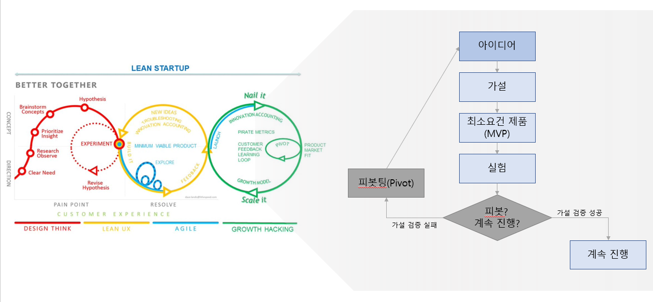 디자인씽킹과 린 UX, 애자일 방법론, 그로스해킹을 묶어 멋진 목표 제품을 만들어 내려는 기업